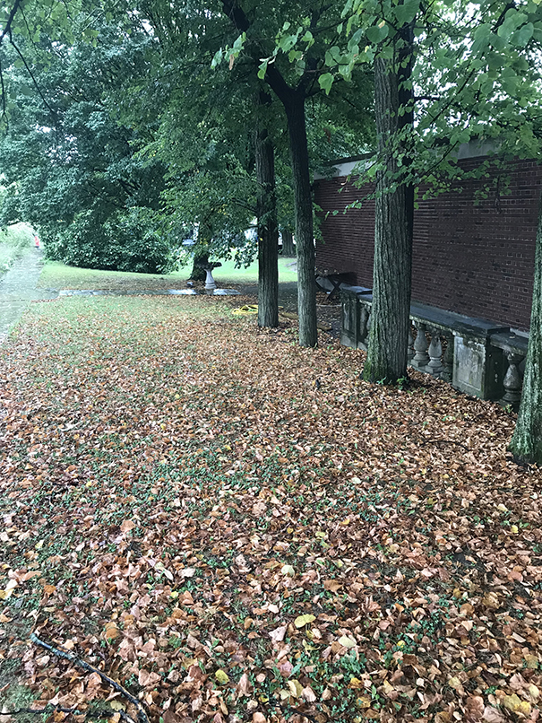 As I move from Shady Avenue to the parking lot that will lead me to the Walled Garden, I’m even more doubtful that I’ll find Nature here. Unbeknownst to me, the Craftsmen’s Guild of Pittsburgh hosts an event every year here in Mellon Park, and they have since 1969, and this weekend is their weekend. I am instantly disappointed, and as I walk along the leaf-littered path through the wrought-iron gate to the ramp that will lead me into the Walled Garden, I think about why I feel the way I do. Why disappointment at the thought of other people? Why doubt Nature’s presence in the center of a city?