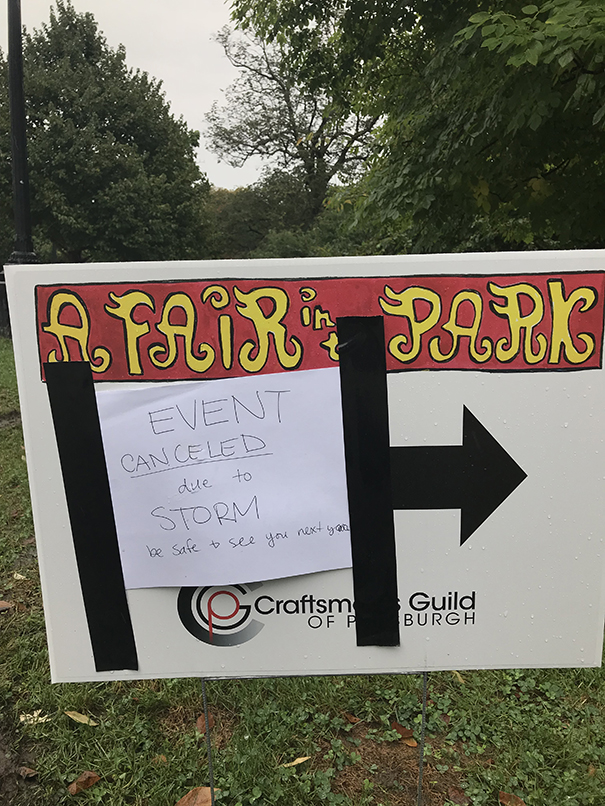 A sign that reads "A FAIR in the PARK Second Weekend of September Mellon Park in Shadyside"
