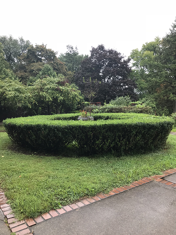 Perhaps most surprising, though, is my sudden desire to do just that, to leave the world I know, to commune with Nature with a capital N, to be a part of something that isn’t neurotically monitored with thermostats and roofs and windows and blinds. I’ve made my way back to that northwestern corner, to that entrance that first entranced me, and I notice some flora I hadn’t yet seen. It is outside the Walled Garden proper; when I had stood here earlier, it was behind me. It is a bush, perhaps a dwarf tree of some sort. It has needles, not leaves, and what looks to be a trunk. I can see the trunk through what looks to be yet another entrance, yet another portal, and I have to stop myself from crawling into it. I have never wanted to crawl into something more in my entire life. It looks torn directly out of all the fantasy novels I’ve read in which a normal human being falls into Faerie, and I could use a bit of magic in my life right now.