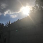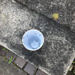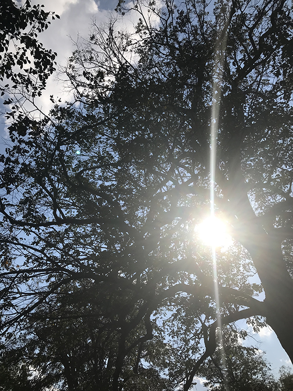 A few feet into the garden, my mother beelines to a picnic table and sits down. “I’ll wait here,” she says. I nod and look up at the enormous trees shading the small clearing. I hear an animal, probably a bird, though it sounds like some sort of monkey laughing at me. The sun blinds me through the branches, and I can’t sight the riotous bird. I take a picture anyway and wander off, meandering along the paths that lead to the various segments of the Rose Garden. Each chunk of land has a theme — Shakespeare’s garden, for instance, with plants mentioned in his plays, or a fragrance garden. But today is no better than that first day. Everything is dead or dying. Weeds choke back the plants; half the time, I can’t decide if I’m looking at something planted intentionally or not. There’s a plastic cup on the stairs, and it’s filled with ants. I walk to a placard, and the information has been ripped away by wind and rain, as if Nature is too shy to have her secrets revealed so easily. (Perhaps, I also think, she’s not shy — she’s mad.)